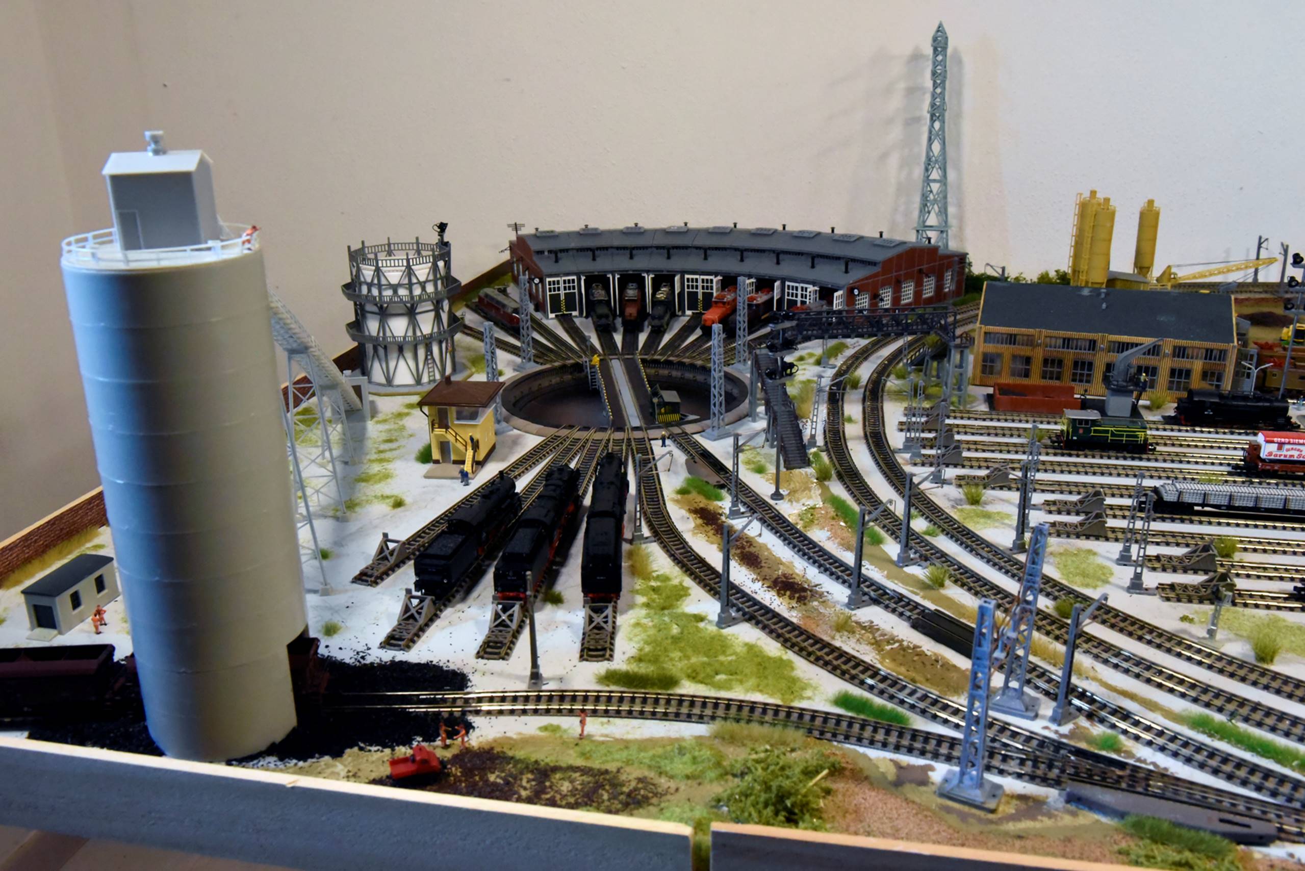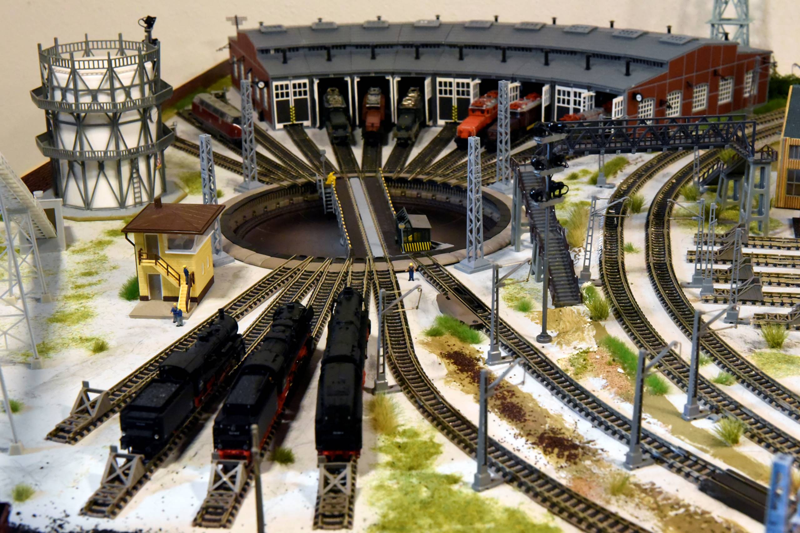 uno scalo ferroviario con piattaforma girevole per ricovero locomotori e