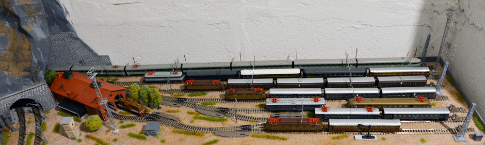 “Lodi” di dimensioni 200 X 300 centimetri, 60 metri di binario Fleischmann con massicciata, 38 deviatori motorizzati, 5 circuiti analogici indipendenti